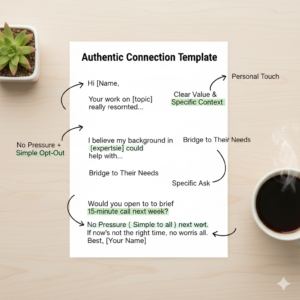I’m going to give you the exact email template that works. I’ve tested it dozens of times. Response rate: 60-70%. And it never feels awkward.