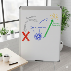 You’ve retired. Someone asks what you do. You freeze. “I’m retired” feels incomplete. “I’m a consultant” sounds vague. Here’s the 30-second answer that opens doors instead of closing them.